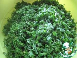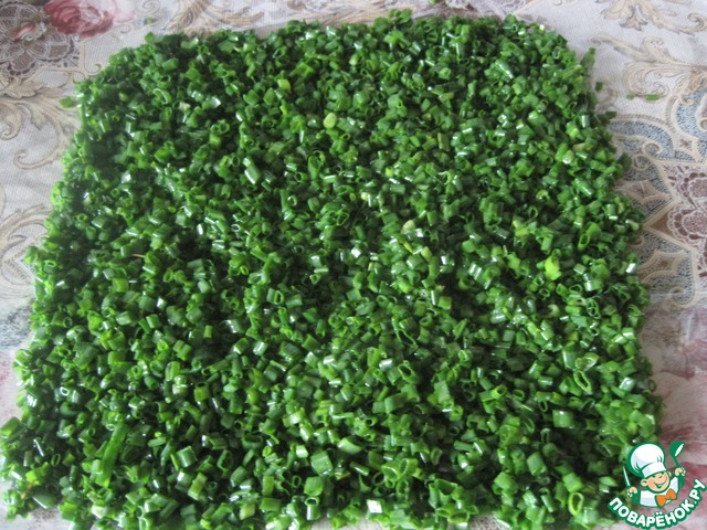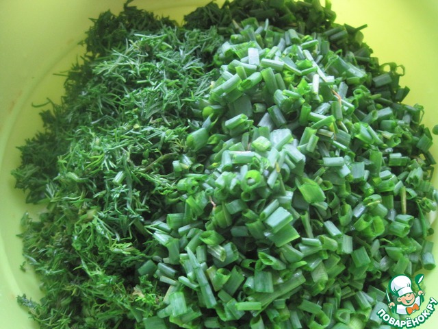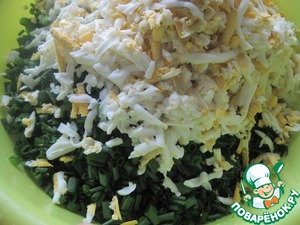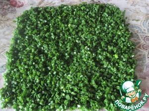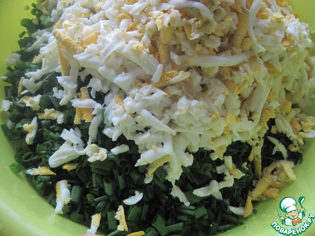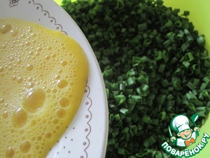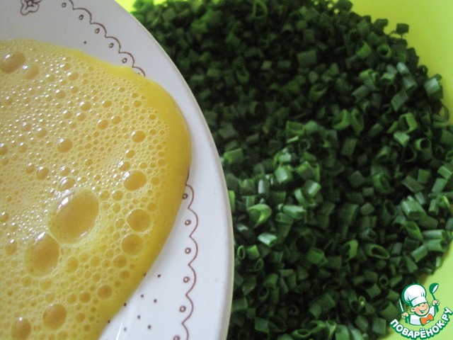 Зеленый лук измельчаем, добавляем слегка взбитое яйцо. -