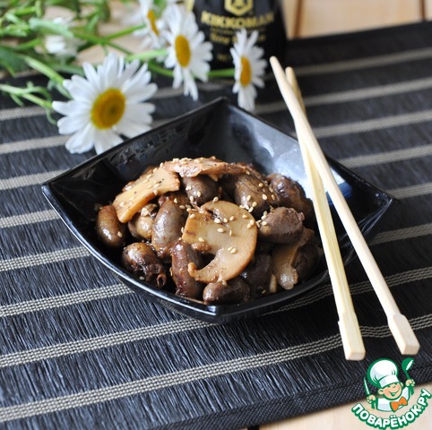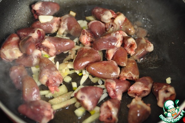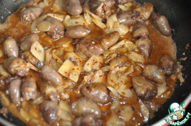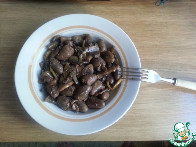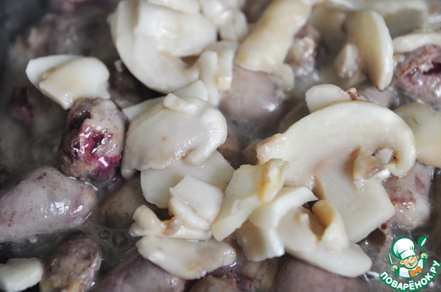 Рецепт «Куриные сердечки в грибном соусе»: