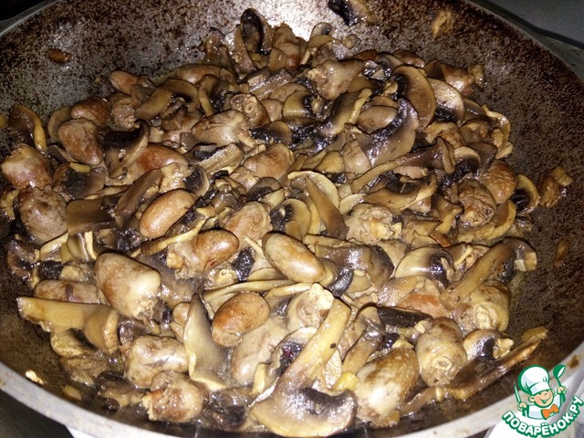 Добавляем нарезанные шампиньоны (свежие или замороженные), перемешиваем, обжариваем 10 минут.