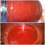 Из полной 4-литровой кастрюли в итоге у вас получится около 3 л чистейшего сока. Вы можете разлить его в бутылки сразу и заморозить, можете добавить сахар. а можете не добавлять, можете закипятить и закатать. Это наш первый побочный продукт. В сливе много пектина и остывший сок даже слегка желируется. Он такой густой, что почти не просвечивается насквозь. При употреблении я рекомендую его разбавлять, потому что слишком концентрированный сок может вызвать незапланированную изжогу.
