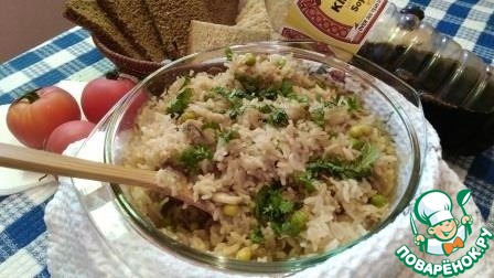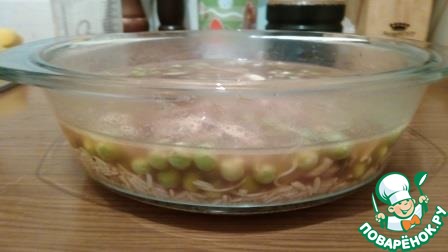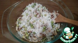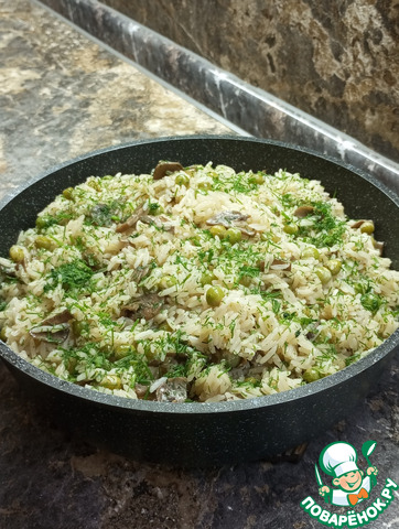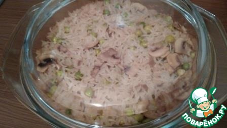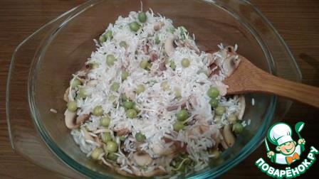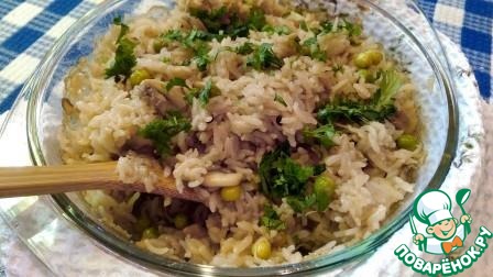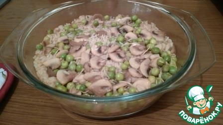 Рецепт «Запеченный рис с грибами и зеленым горошком»:
