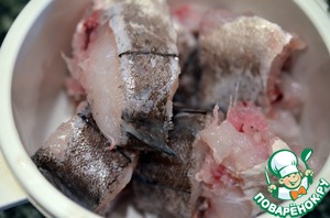 Рыбу помыть, нарезать на небольшие куски. Рыба может быть любая, у меня была пикша.
