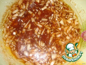 Подготовьте маринад, смешав мелко порезанный лук с остальными компонентами для маринада.