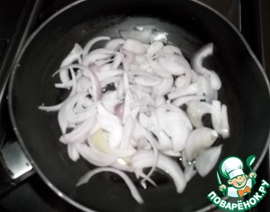 В разогретое на сковороде масло высыпать лук и тушить, помешивая на огне меньше среднего до мягкости и прозрачности (около 7 минут). -
