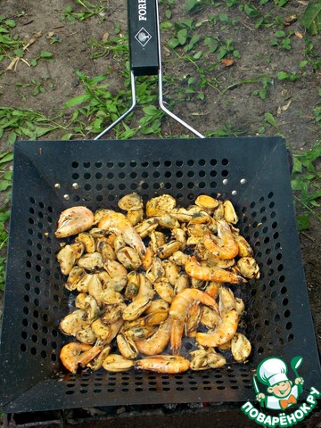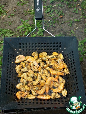 • Сковороду-гриль от фирмы "Forester" смазать маслом и положить морской коктейль.