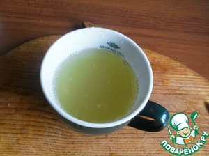 Пока манник печется, в теплой воде развести мед и выжать туда же сок с "оскальпленного" лимона. Если есть необходимость, процедить через ситечко.