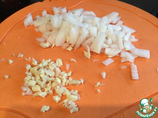 Очистите и мелко порежьте лук и чеснок. |