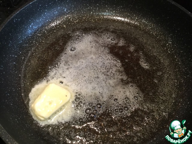 На раскалённую сковороду налейте растительное масло, положите кусочек сливочного масло и растопите его. |