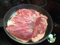 Обжарьте грудки с двух сторон на сильном огне до золотистости. |