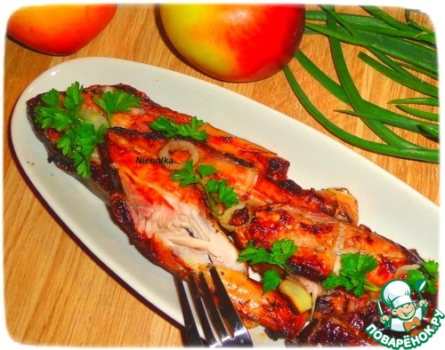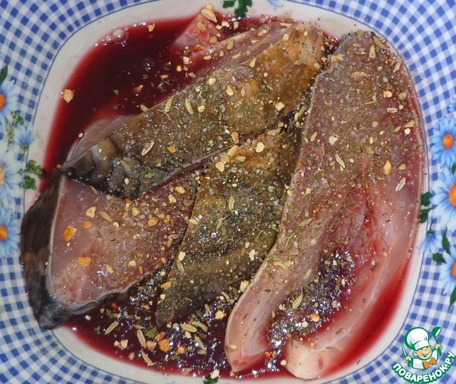 Этот рецепт покорил меня и мою семью своим вкусом. Теперь будем готовить рыбный шашлык только в красном вине. Рыба получается настолько вкусной, что словами не передать. Из-за маринования в красном вине рыба имеет легких копченый вкус. Мои так и сказали: получилась копченая рыба! Отличное сочетание приправы Forester и красного вина.