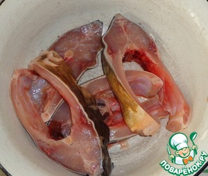 Карпа берем большого 1-2 кг. Почистить, выпотрошить и нарезать на куски.