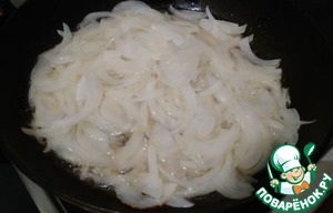 В сковороде разогреть смесь масел. Обжарить на масле лук до золотистого цвета.