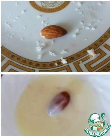 1. Берём одну миндалинку и хорошо обволакиваем в сгущённом молоке. -