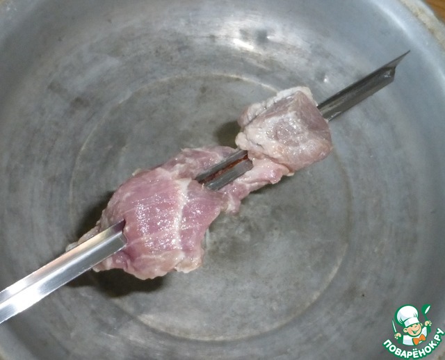 Вот так получается шампур со свининой.