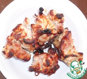 В общем смысл в том, что курица и шея маринуются ВМЕСТЕ, а не по отдельности. И вкус курицы чудесным образом смешивается со свиным, даже, я бы сказала, теряется, заменяется свиным. Получается что-то необычное. Мне так кажется. Ну а свиная шея свой вкус не теряет, курица на нее не влияет. -