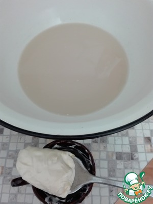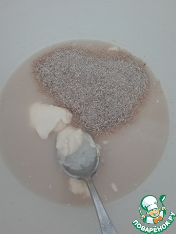 В теплой сыворотке растворить дрожжи, добавить сахар, соль, сметану.