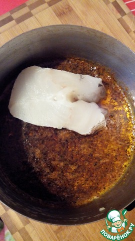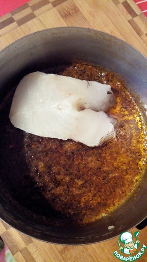 • Окунуть стейки трески в маринад. Оставить в маринаде минут на 10