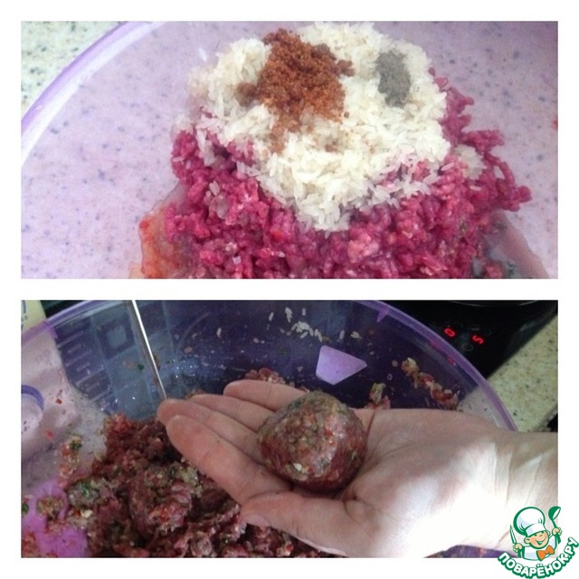Всыпать соли и все специи. Добавить сырое яйцо. Тщательно вымесить фарш. Поставить кастрюлю с водой на плиту. Когда вода закипит, добавляем соль и формируем из фарша фрикадельки среднего размера. Закидываем их в кипящую воду, аккуратно помешиваем.