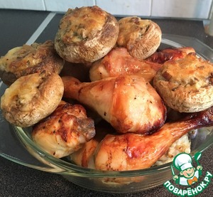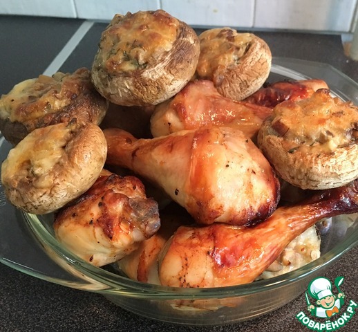 Рецепт «Курица с фаршированными шампиньонами в духовке»: