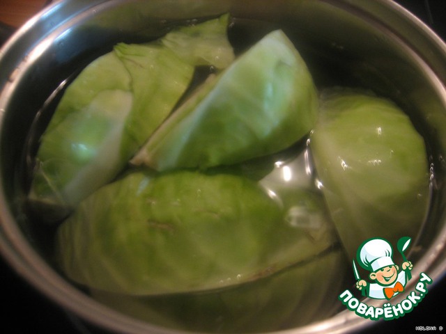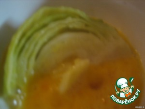 Готовую капусту вымачиваем по 1-2 мин. с 2-х сторон и выкладываем на противень.