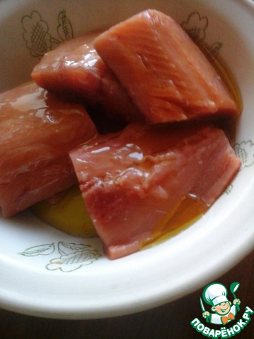 Тщательно перемешать, "искупав" рыбку в маринаде. Не солить!