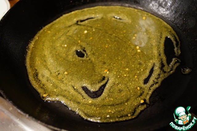 Креветки заранее разморозить. На сковороде разогреть масло со специями.