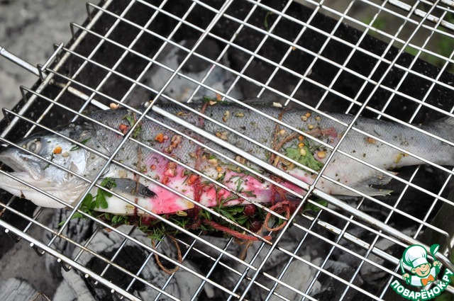 Выложить рыбку на решётку и запекать над углями минут 15-20. Предлагаю вам воспользоваться универсальной решеткой фирмы FORESTER, на которой можно приготовить мясо, птицу, рыбу, овощи на открытом огне.