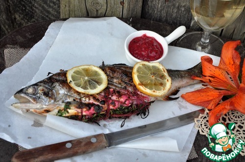 Для фаршировки мы будем использовать зелень и красную смородину, которая придаст рыбе этот пикантный вкус. Этот рецепт отлично подойдет чтобы украсить праздничный стол, так как блюдо выглядит действительно красиво и не останется без внимания.