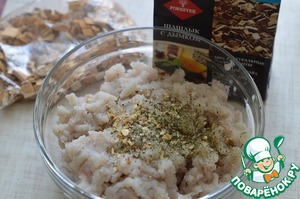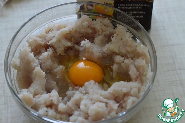 • 1. Филе с луком пропустить через мясорубку. Добавить приправу Forester для рыбы.