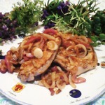 Сегодня муж все же уговорил меня приготовить мясо. Попробовав кусочек, он достал из холодильника вино и налил два бокала. Я вначале отказывалась, мол, жарко, какое вино?.. Но он сказал: "Ты просто попробуй!" Это было давно, но мы помним тот ужин в летнем кафе у моря... И это мясо очень напомнило вкус той летней ночи. Вот такой вот "романтический" стейк получился!