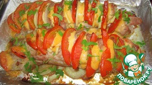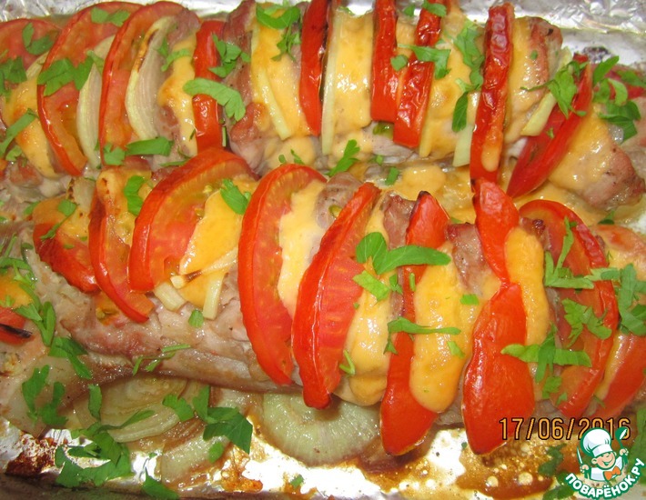 Рецепт «Мясо "Гармошка" с помидорами и сыром»:
