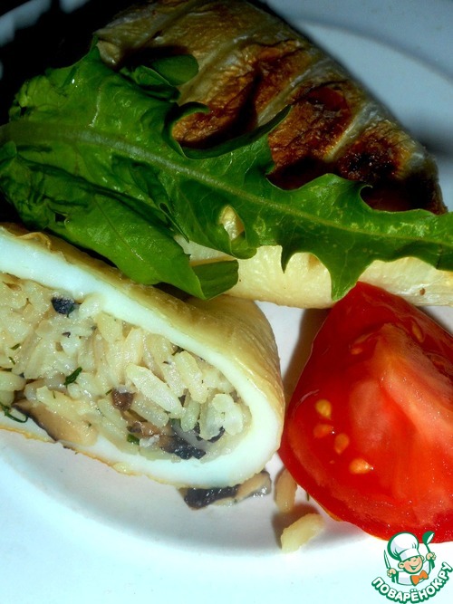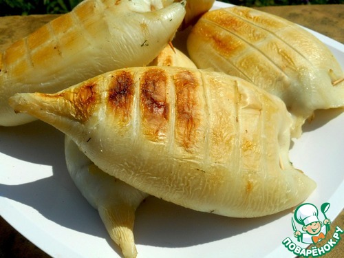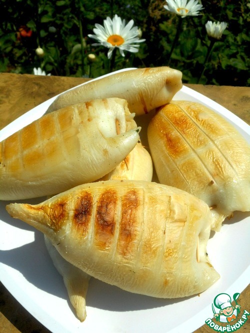 Я уже давно хотела приготовить фаршированные тушки кальмара на гриле. Блюдо получилось замечательное, вкусное и очень интересное.