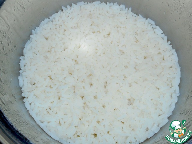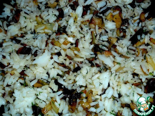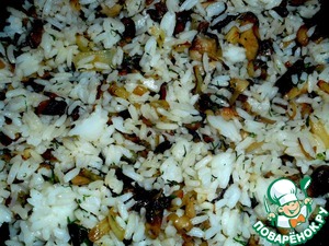 • Грибы и рис соединяем, перемешиваем. Солим, перчим по вкусу.