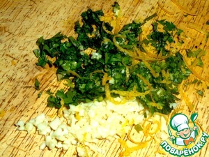 • Кинзу (петрушку) и чеснок мелко рубим.