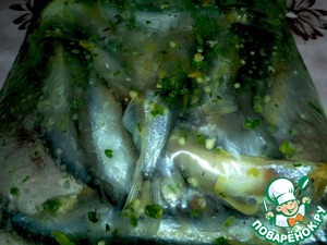 • Пакет закрываем и слегка трясем чтобы вся мойва покрылась маринадом. Кладем в холодильник на ночь для маринования.