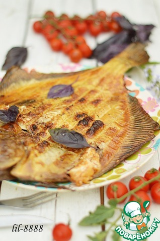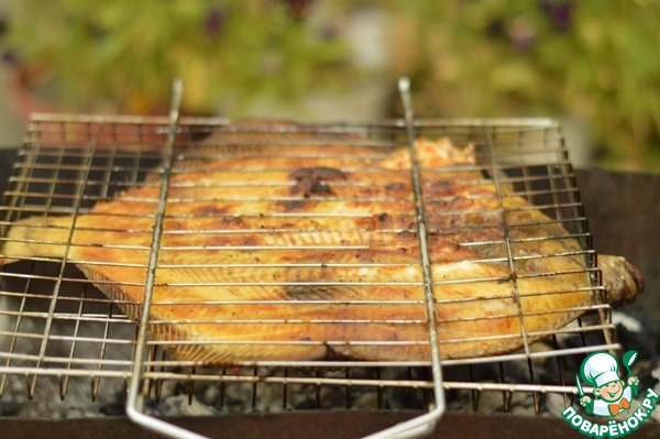 2. Затем переложить камбалу на решетку Forester и готовить на тлеющих углях до готовности.