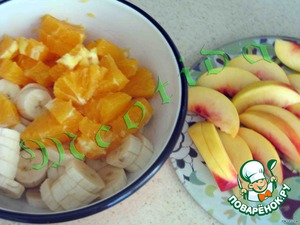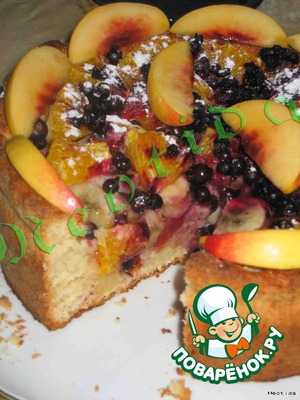 Нежнейший и воздушнейший пирог из творожно-йогуртного теста... Пропитанный соками и восхитительными запахами ароматных бананов и сочного апельсина... Горстка ягод для легкой кислинки... и нектарина для украшения... С необычной прослойкой из рахат-лукума, придающей дополнительную экзотическую изысканность пирогу... Легкий в приготовлении и такой же легкий в поедании пирог, который порадует маленьких и больших сладкоежек.
