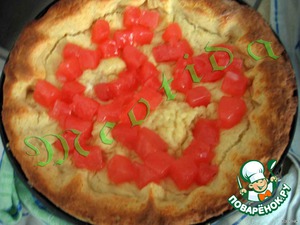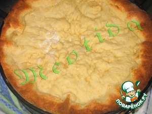 В серединку пирога положить рахат-лукум (здесь мой вариант приготовления рахат-лукума: https://www.povarenok.ru/recipes/show/11656/ ) и хорошенько его утопить внутрь..