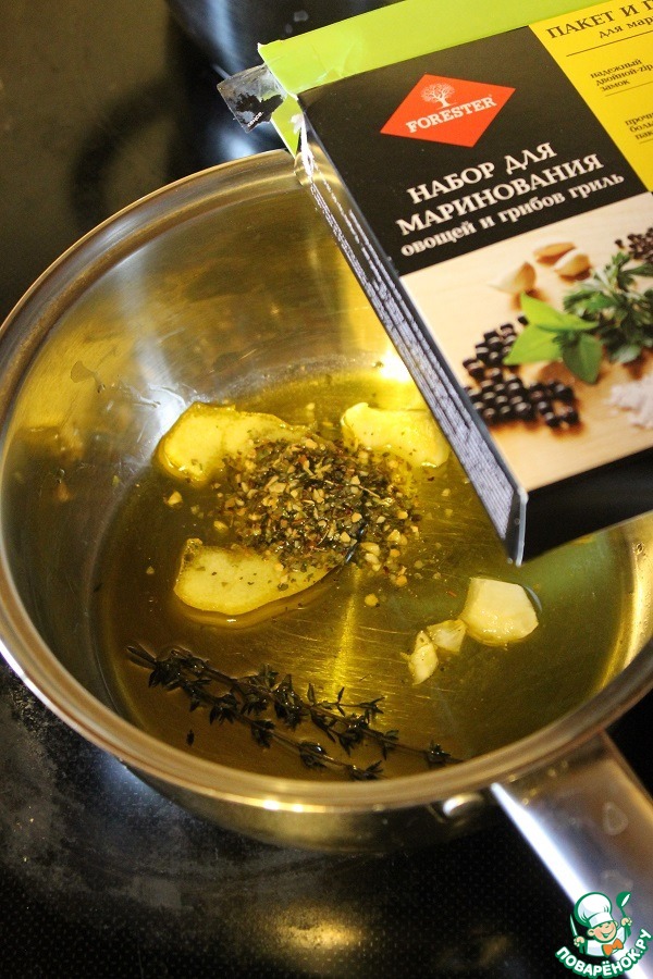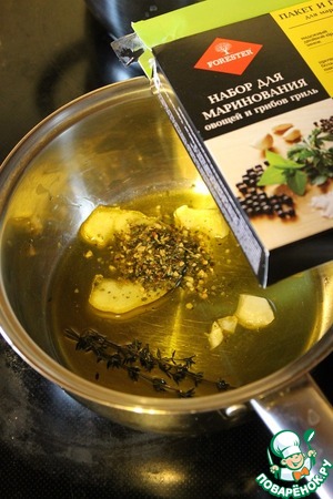 Смешать все ингредиенты для маринада, кроме приправы ТМ FORESTER. Поставить на слабый огонь и томить 10 минут.