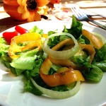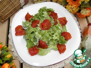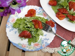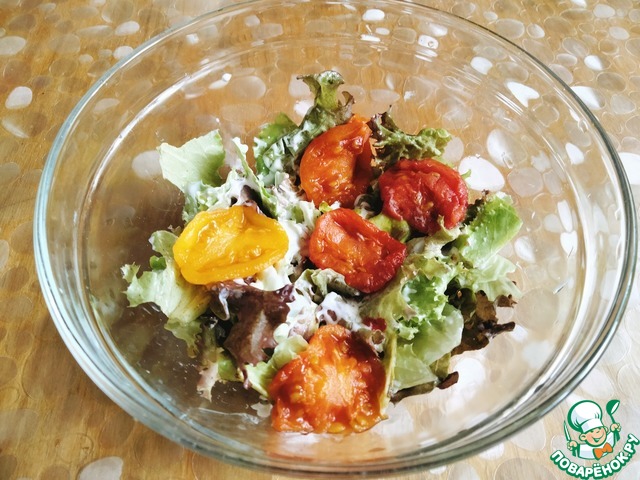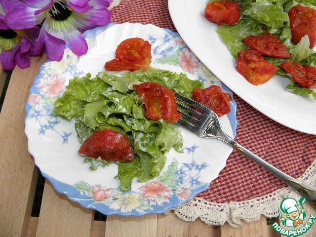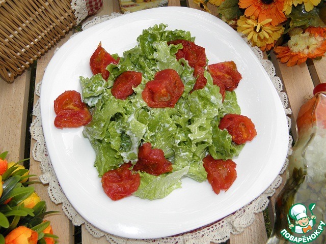 Выложить на блюдо, или в салатник, сверху разложить жареные помидоры, поперчить, проверить на соль.