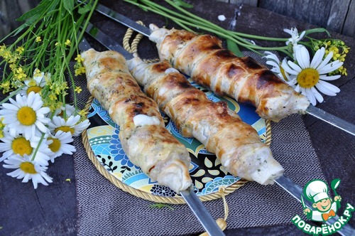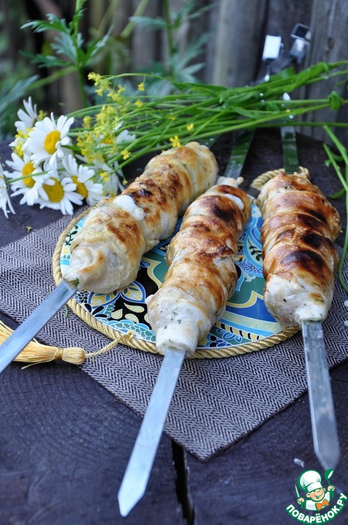 Расстояние до углей должно быть примерно двенадцать сантиметров. С огромным вниманием запекаем наш кебаб, поворачиваем часто, не дожидаясь, пока тесто пригорит. -