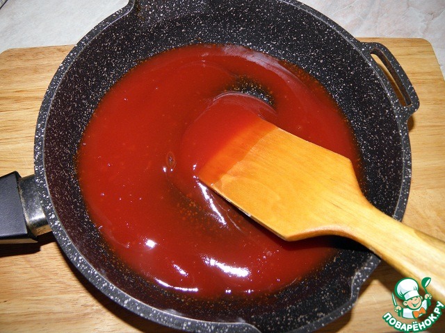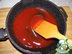 Смешать кетчуп и мед, прогреть на сковороде и, все время помешивания добавить соль и перец по вкусу. -