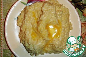 Затем влить молоко, сначала 2 стакана, проверить на соль-сахар, накрыть крышкой и готовить на маленьком огне еще 10-15 минут, периодически помешивая, следить, чтобы каша не оседала, а количество молока потом регулируйте сами: кто любит густую кашу, оставьте так, кто любит пожиже, долейте молока на свое усмотрение.