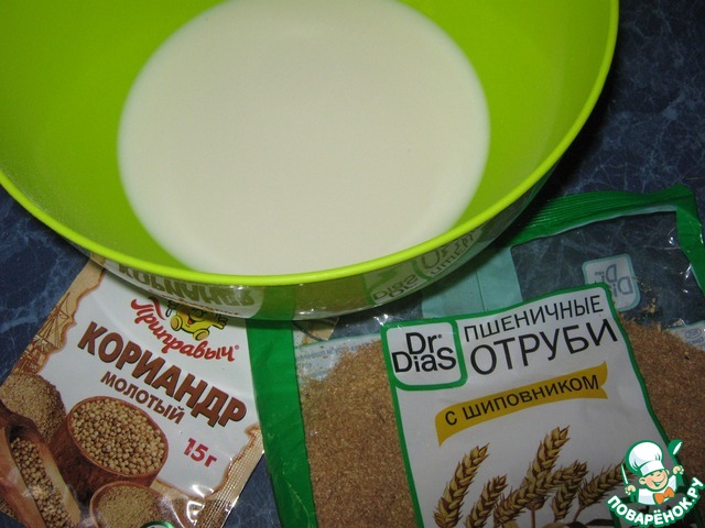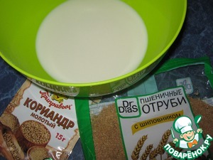 В тёплом молоке растворить сахар, соль, дрожжи. Подготовить отруби и кориандр.