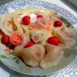 Мороженая клубника, если честно, мне не нравится. У неё совсем другой вкус, она становится мягкая и сильно течёт. Вареники готовила только со свежей.