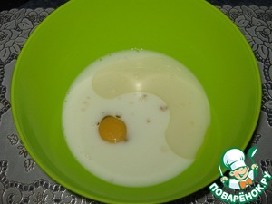 В тёплом молоке растворить сахар, соль, дрожжи. Вбить яйцо, влить две столовых ложки растительного масла. Взбить венчиком.