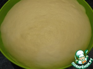 Миску смазать маслом, переложить тесто. Плотно накрыть и убрать в тёплое место на час.