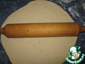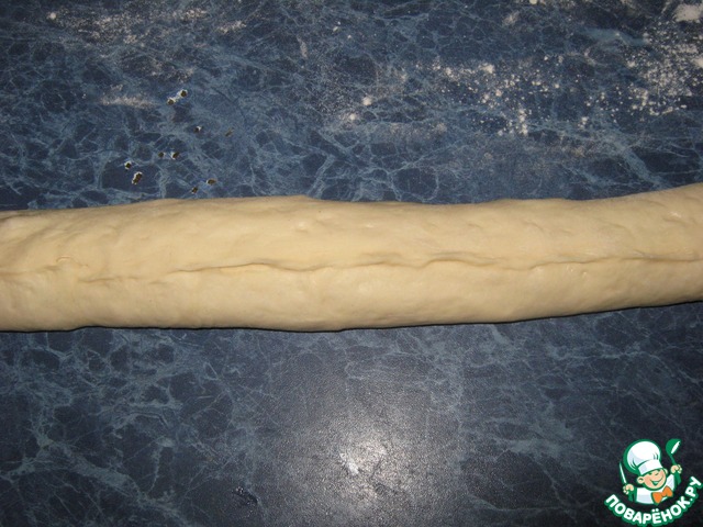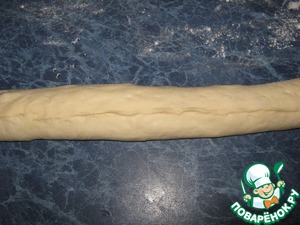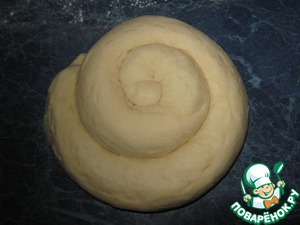 Скрутить в "улитку". Слегка раскатать скалкой.