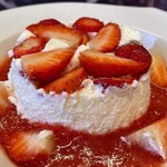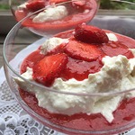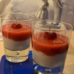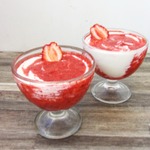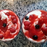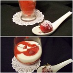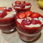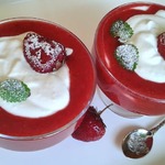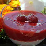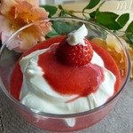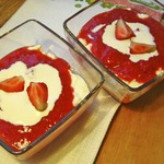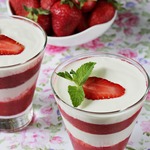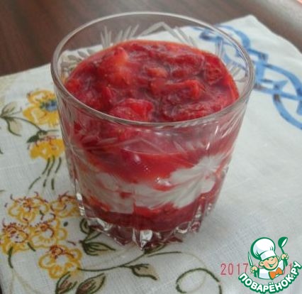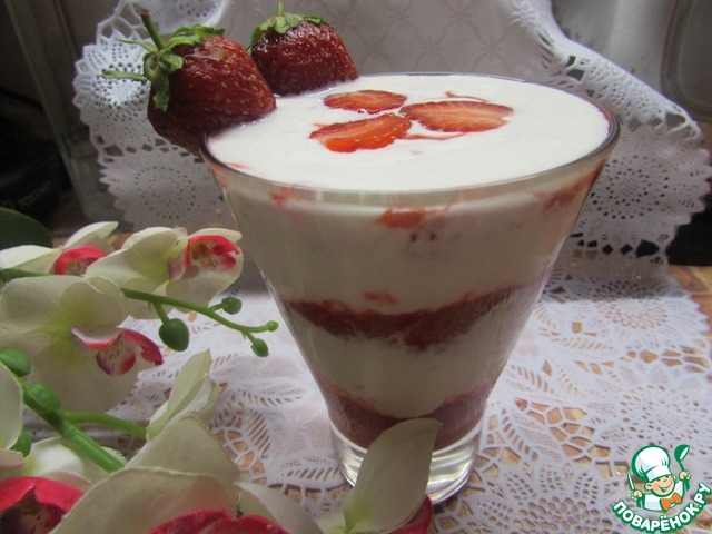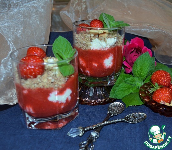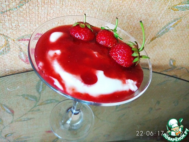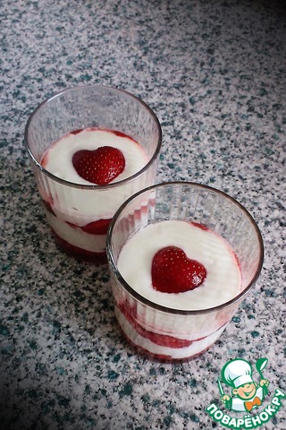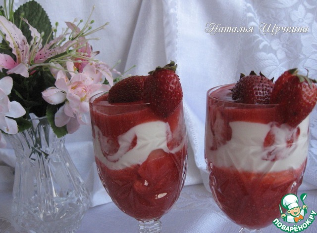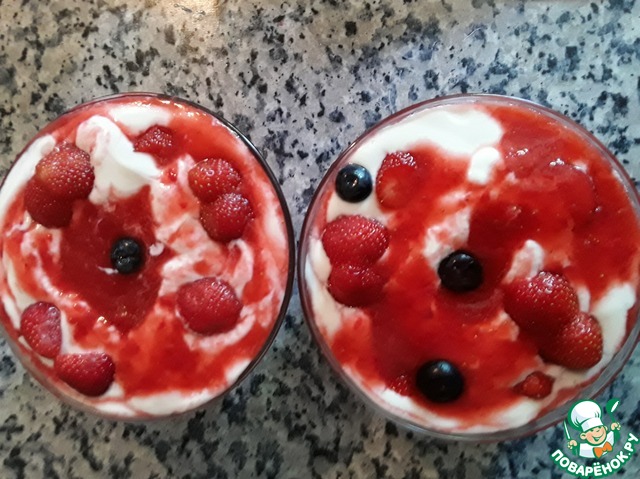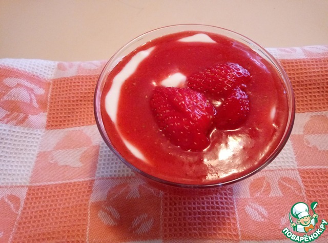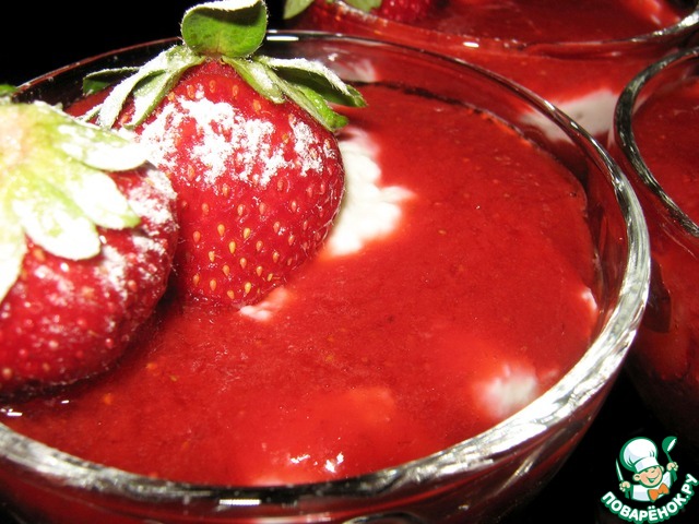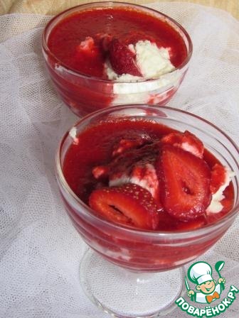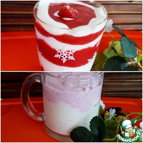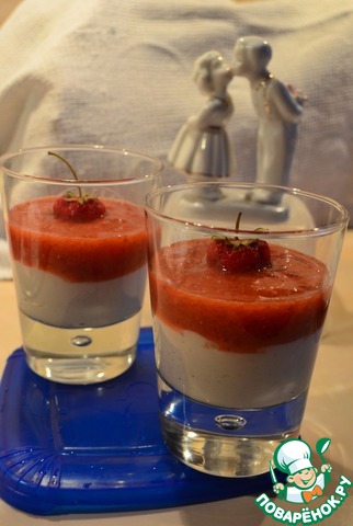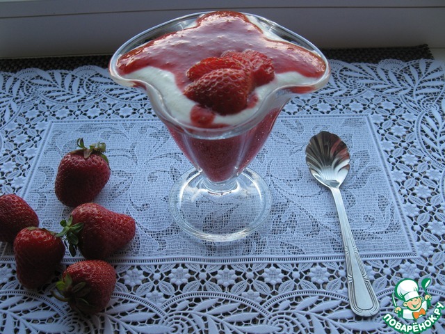 На дно креманок положить клубничное пюре, кусочки ягод.