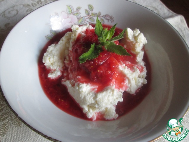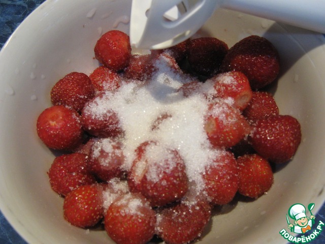- Сахар (3 ст.л. в творог, 3 ст.л. в клубнику) — 6 ст. л.